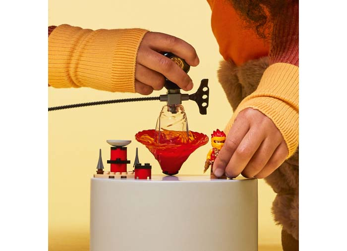 Ajută-l pe Kai să stăpânească abilităţile Spinjitzu cu acest uimitor spinner ninja de acţiune. Aşează-l în interiorul spinner-ului, trage şnurul de lansare şi urmăreşte cum se învârte frenetic iar şi iar. Este esenţial ca el să-şi perfecţioneze echilibrul. Creează provocări făcând turnul de antrenament din ce în ce mai înalt! Este datoria ta să-l pregăteşti pe Kai de luptă şi să-l ajuţi să-şi atingă adevăratul potenţial.
