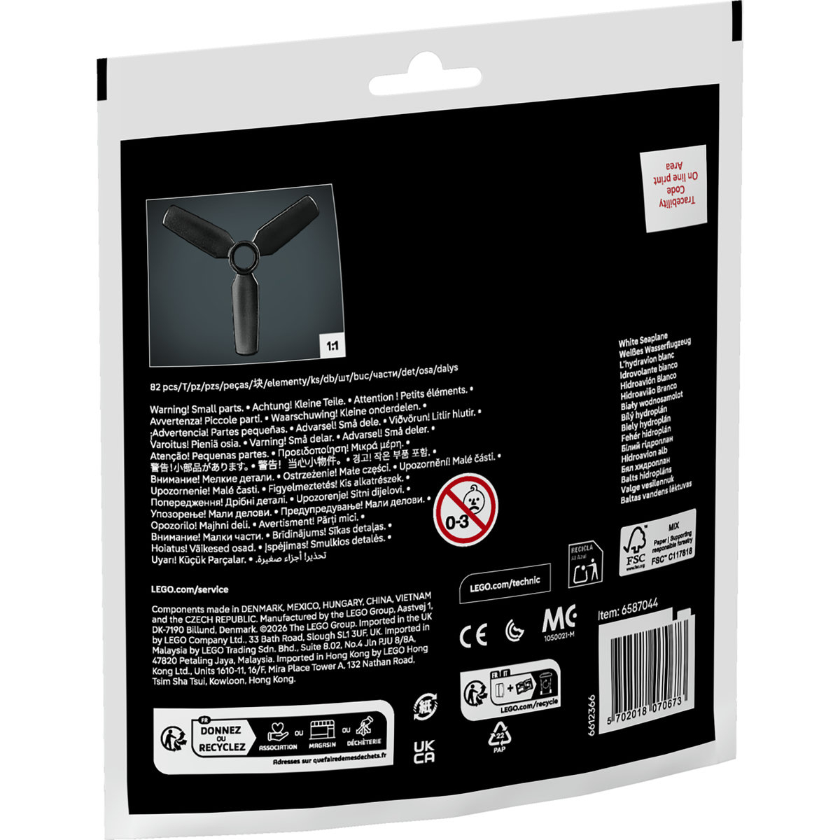 Dedică-i timp pentru joacă cu LEGO® Technic Hidroavion alb pentru băiei ţi fete de 7 ani ţi mai mari. Include elice pe care copiii le pot roti folosind roata dinată de deasupra.