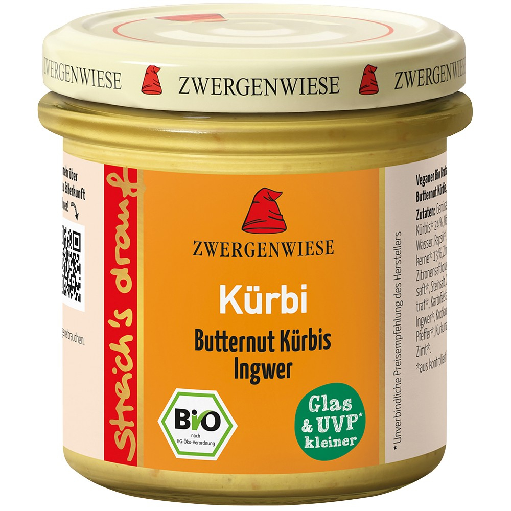 Zwergenwiese Pasta tartinabila bio cu seminte de dovleac si ghimbir fara gluten. Combinatia dintre bucatile de dovleac si aroma de ghimbir face ca aceasta raspandire picanta sa fie deosebit de gustoasa. Are un gust bun in diverse creatii sandwich, ca condimente pentru sosuri si dressinguri.